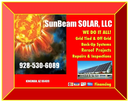 SunBeam SOLAR serves all of Mohave County including all Kingman areas such as Lake Havasu City, Bullhead City, Fort Mohave, Mohave Valley, Golden Shores, Meadview, Dolan Springs, Peach Springs, Hackberry, Valle Vista, Yucca, Golden Valley….and all the rural areas that other